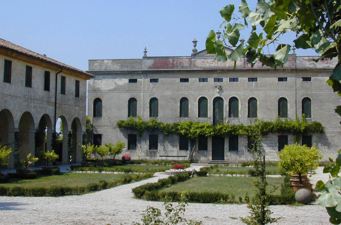 Impianto a "C" con villa e due barchesse ortogonali, con giardino e cinta di mura.Specifiche: