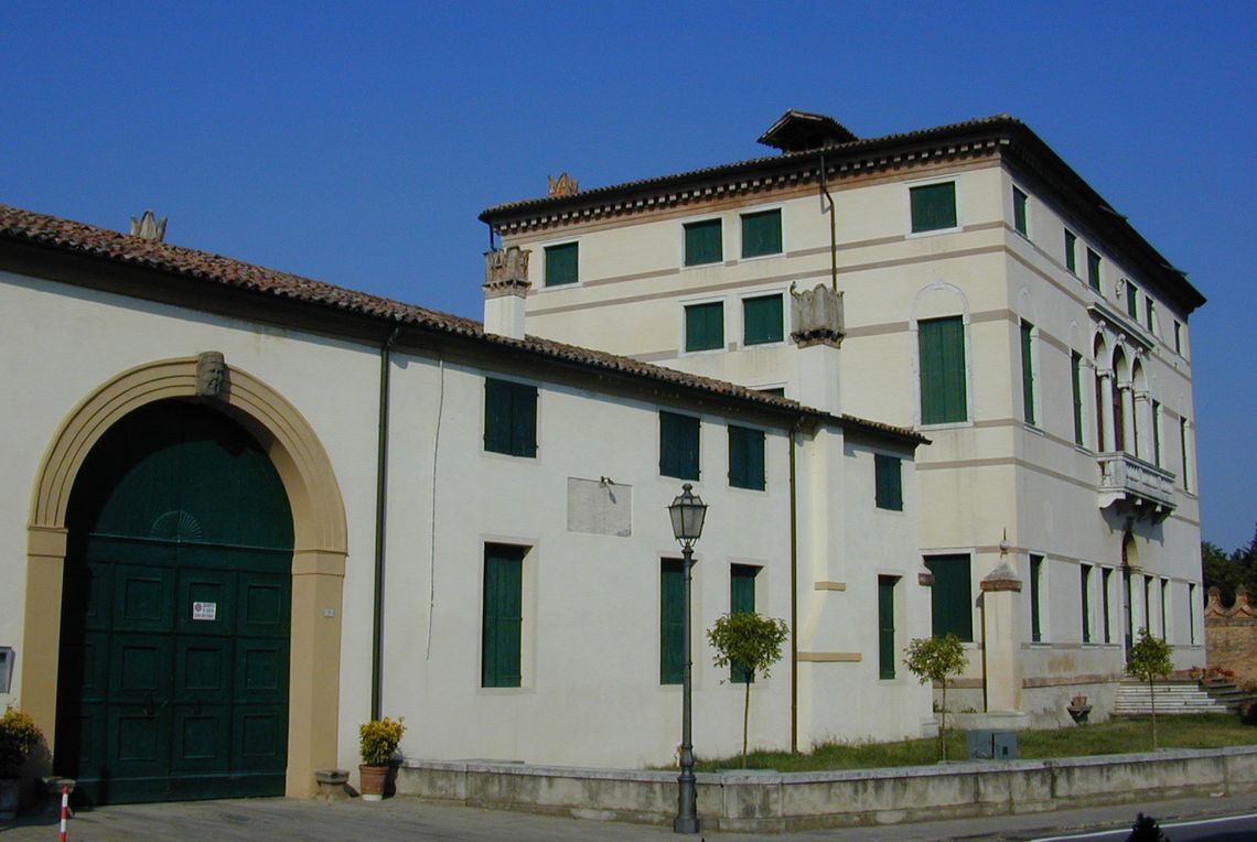 Il complesso ha sviluppo longitudinale ed è formato dalla villa padronale propriamente detta, posta sul piazzale antistante la chiesa. Un corpetto, di altezza inferiore, si unisce alla villa. In esso sono poste le stanze di servizio; a seguire un ampio portale ad arco che introduce alla corte interna e infine alla barchessa.Specifiche: