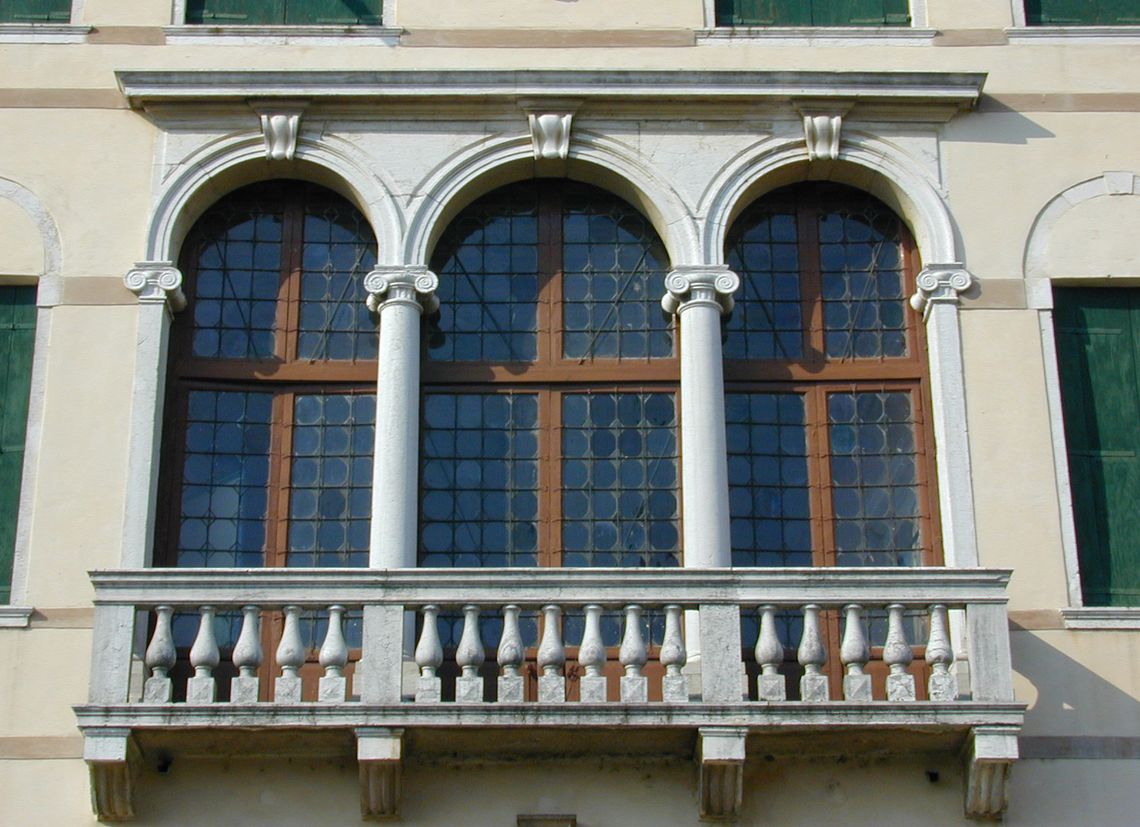 - Descrizione: La trifora al piano nobile, nel prospetto principale che guarda alla strada, viene arricchita dall'utilizzo di colonnine ioniche.