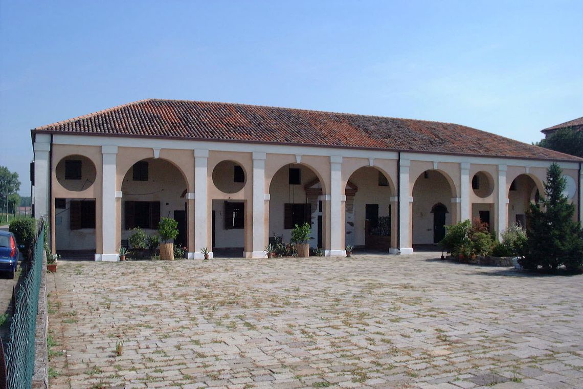La villa si eleva su due piani ed ha forma pressoché cubica, il tetto a quattro falde con ampio abbaino sul fronte principale; presenta un loggiato a tre fornici di accesso e quattro stanze, ali affiancate al corpo centrale. Le due adiacenze si aprono con le barchesse con arcate verso la strada principale, mentre hanno edifici ad essi ortogonali orientati verso l'interno. Oratorio dedicato alla Vergine Assunta.Elementi Decorativi:
