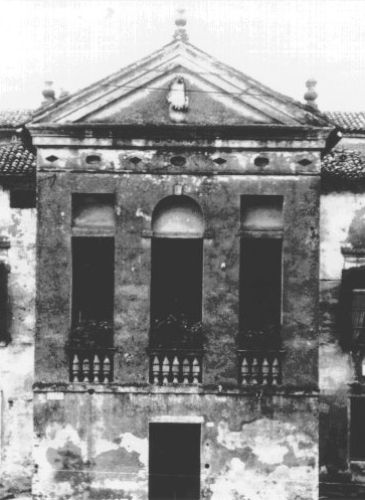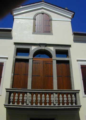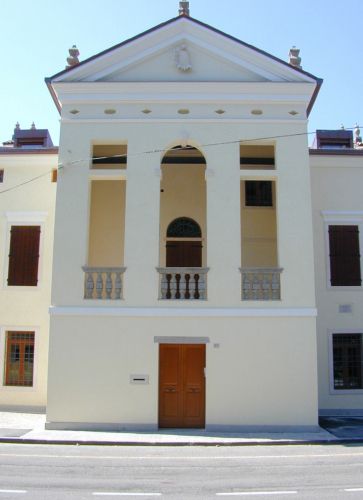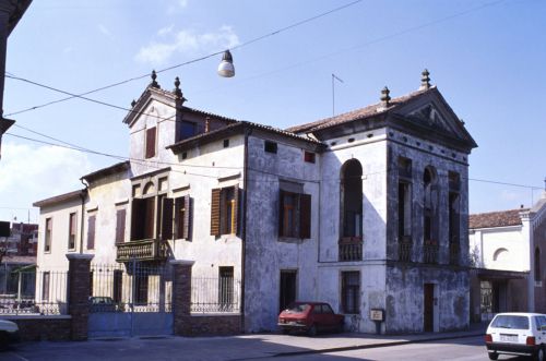 La villa è impostata su pianta quadrangolare, con un portico aggettante nella facciata sulla strada. I due prospetti laterali, simmetrici, presentano la sopraelevazione di un piano dell'area mediana, a definire una impostazione a croce greca. Ampio giardino detto "Pra"