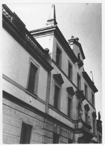 - Osservazioni: Edificio elevato su tre piani con piano terreno reso a bugnato. Nel volume mediano la cornice di gronda è interrotta dalla sopraelevazione timpanata decorata con vasi acroteriali.