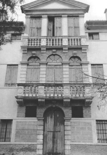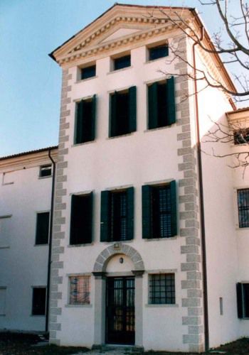 - Osservazioni: Il prospetto principale, a sud, ha la partizione mediana, corrispondente all'androne passante, con portale d'ingresso sormontato da due piani aperti in loggiati a triplo fornice coronati da un timpano.