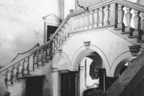 - Descrizione: La portafinestra a pentafora, presente al piano nobile, ha arcate a pieno sesto con decoro in chiave su cui poggia una cimasa decorata.