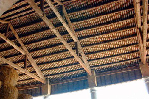 La barchessa ha pianta rettangolare ed è aperta in campate architravate con colonne di ordine gigante.Elementi Decorativi: