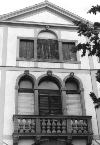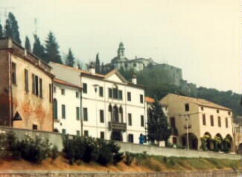 - Osservazioni: Il fronte principale presenta un fornice inusualmente molto ampio. In corrispondenza la trifora con balaustra lapidea. Il timpano corona il prospetto. Le pavimentazioni esterne sono realizzate con la pietra locale: la trachite.