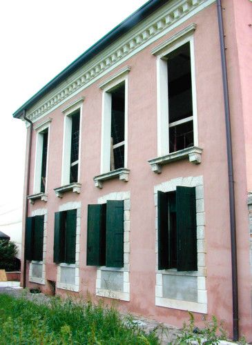 - Descrizione: Sul prospetto meridionale, la barchessa ha le finestre del primo piano con cornice in pietra sormontata da un listello aggettante.