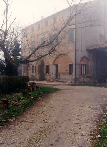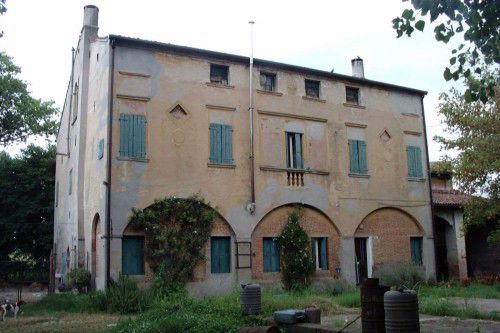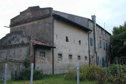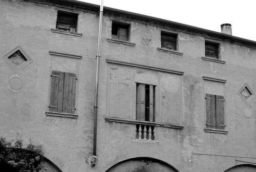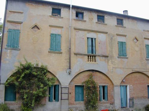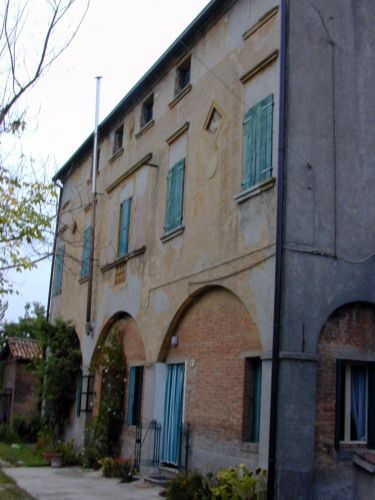 L'edificio è impostato su un piano terreno a loggiato con tre arcate a sesto ribassato su pilastri in fronte e fornice sul lato, un piano nobile con trifora su balcone e le soffitte; tetto a due falde. Adiacenze addossate in linea sul fianco breve.Elementi Decorativi: