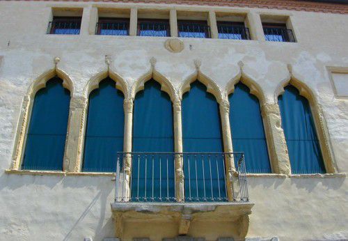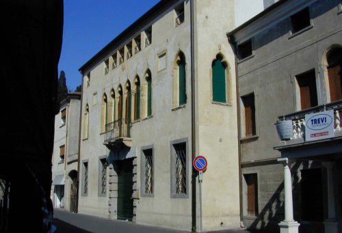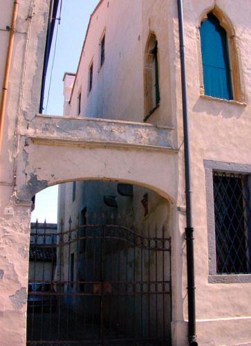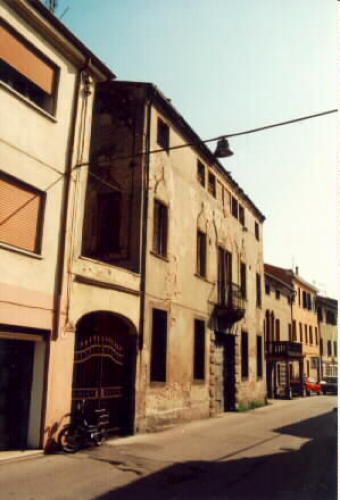 Quinta su strada, il palazzo si alza di tre livelli e si sviluppa profondamente verso l'interno con pianta tripartita.Elementi Decorativi: