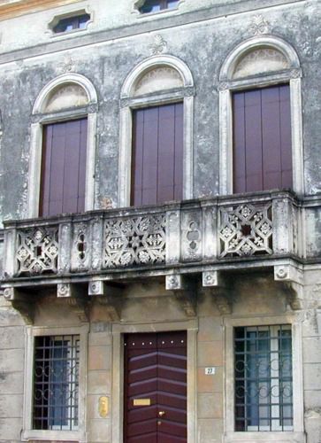 - Descrizione: Balaustra traforata sul balcone al piano nobile poggiato su mensoloni in pietra.