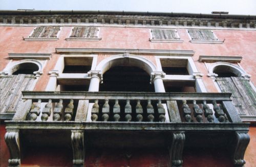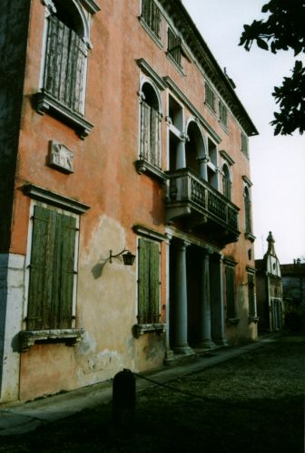 - Descrizione: Due colonne tuscaniche a piano terra reggono l'architrave della loggia al piano primo che ha una serliana con l'arco centrale sorretto da due colonne ioniche in pietra d'istria.