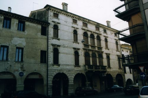 - Osservazioni: Il palazzo si presenta con un portico pubblico con cinque archi, a piano terra, sovrastato da tre piani connotati dalla tripartizione del prospetto determinata dalle trifore centrali.
