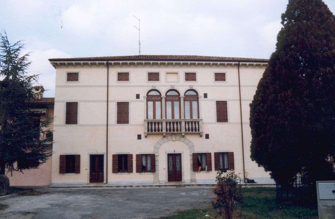 - Descrizione: L'accesso al cortile è segnato da pilastri bugnati a corsi bianchi e grigi; il portale del corpo padronale, ad arco a sesto ribassato, è profilato da conci in pietra lavorata a bugnato.