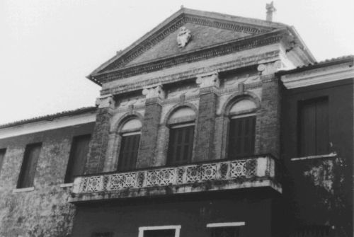 - Descrizione: Sul fronte verso il fiume, quattro paraste in laterizio con capitelli in pietra sostengono la trabeazione su cui poggia il frontone.