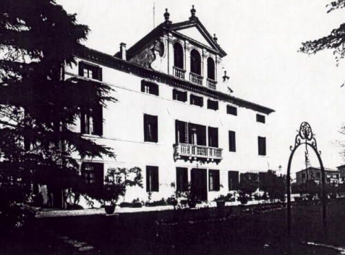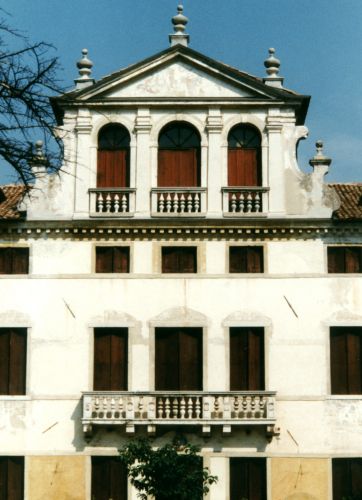 - Descrizione: Chiude la facciata del corpo padronale un timpano a profilo triangolare, arricchito da slanciati pinnacoli in pietra ai vertici.