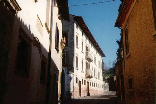 - Osservazioni: Edificio elevato su quattro piani, di cui il primo e il secondo uguali tra loro, impostato secondo uno schema tripartito. La presenza di un affresco trecentesco al primo piano indica che il palazzo è frutto di un adattamento di un edificio preesistente.