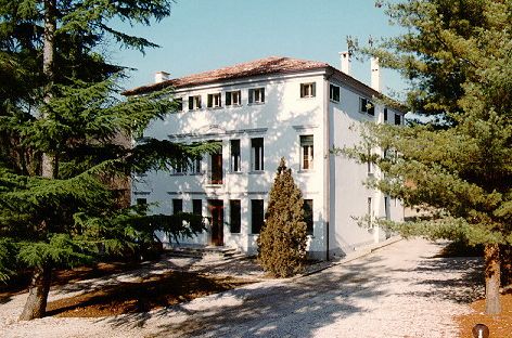 - Descrizione: Sul fronte principale la villa, a piano terra e al primo, ha aperture rettangolari decorate sopra l'architrave da listelli modanati in aggetto.