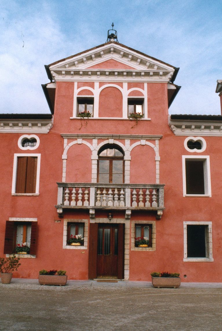 - Descrizione: Un sopralzo timpanato dal profilo triangolare chiude la facciata del corpo padronale.