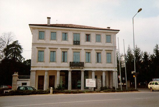 - Descrizione: Il portico architravato che domina il fronte principale e percorre l'intero pianterreno risulta formato dalla successione di sei alte colonne liscie di ordine dorico, da due pilastri e da due semipilastri.