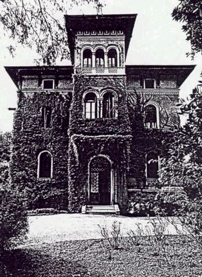 Edificio residenziale, caratterizzato da una torretta con bifore e trifore nell'angolo nord-est, circondato da un vasto parco con una serie di annessi, tra cui la stalla, la casa del giardiniere e una serra.Specifiche: