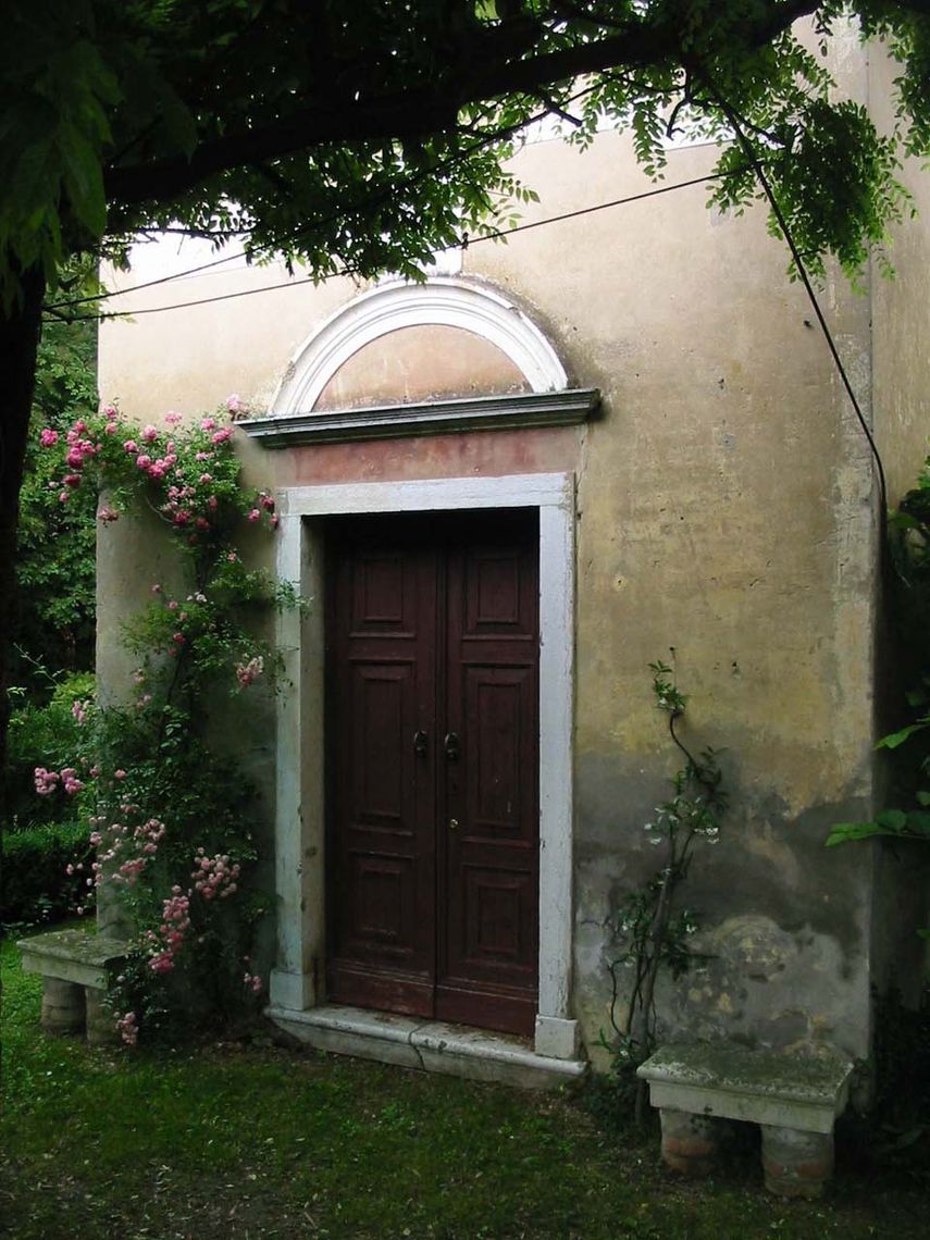 Di impianto settecentesco, il complesso si compone di villa, due ali laterali parzialmente porticate, corpo casa colonica e piccolo oratorio prospiciente su strada. Villa su due livelli con sopralzo passante, nella parte centrale, concluso da un timpano triangolare con vasi acroteriali. Trifora al piano nobile con poggiolo. A piano terra una breve scalinata conduce al portale centinato con mascherone in chiave di volta. Interno con la consueta tripartizione con salone centrale passante e stanze laterali simmetriche, su entrambi i piani. Due lunghe ali laterali su due piani, con sottotetto munito di oculi, sono addossate al corpo centrale. Segue un secondo e più basso corpo passante al quale si affianca il terzo e ultimo corpo porticato. Piccolo oratorio, dedicato alla Madonna degli Angeli, di un solo vano rettangolare, con semplice apertura centrale architravata sormontata da una lunetta semicircolare tamponata. Piccolo oratorio, dedicato alla Madonna degli Angeli, di un solo vano rettangolare, con semplice apertura centrale architravata sormontata da una lunetta semicircolare tamponata.Specifiche:
