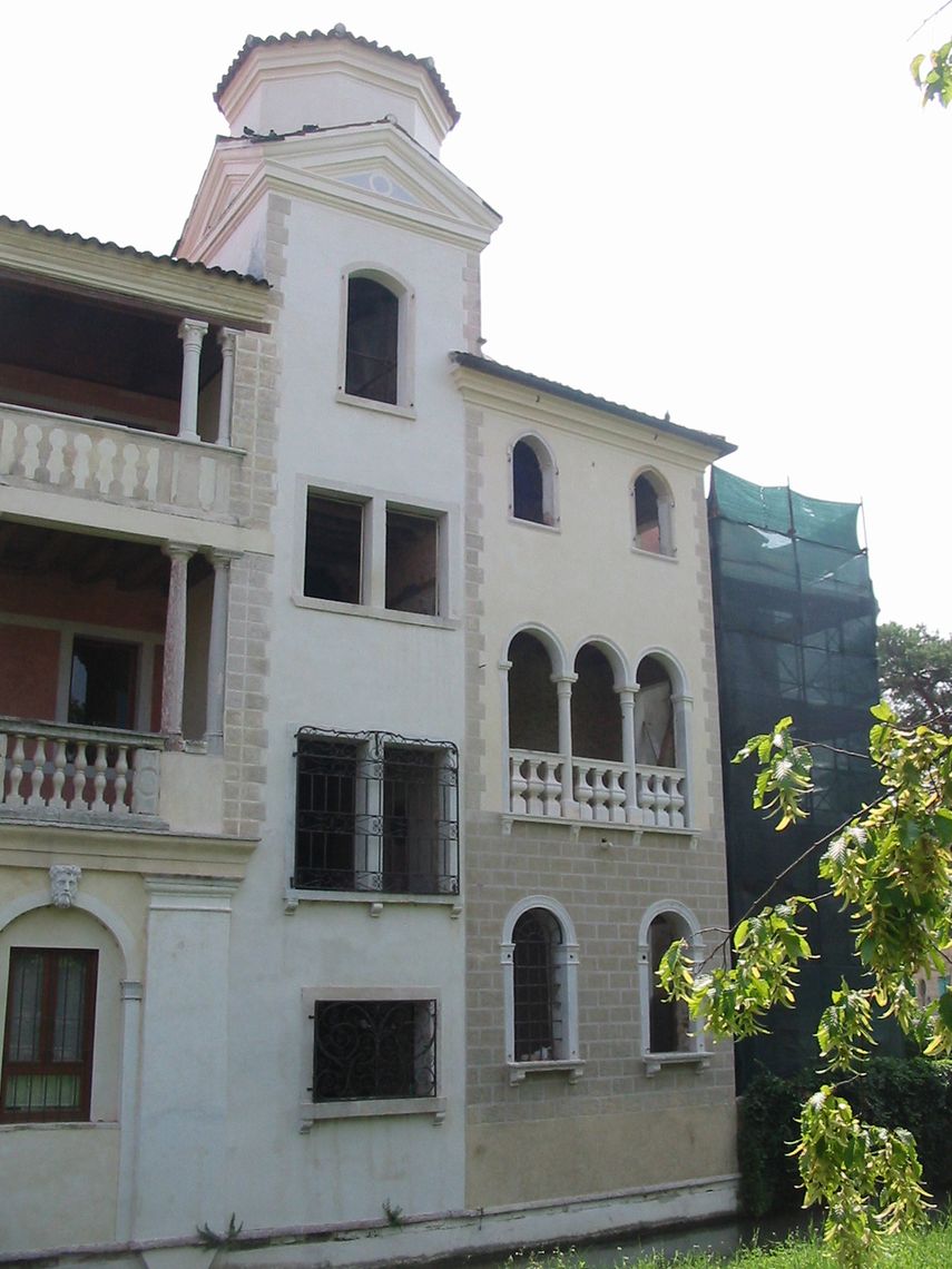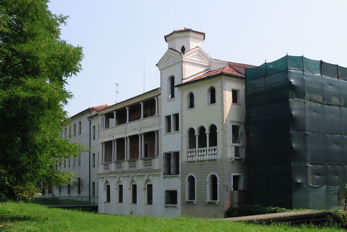 Villa a pianta rettangolare, su due livelli, con tetto a padiglione. Trifora con aperture rettangolari a piano primo. Appendice recente nella facciata posteriore. Oratorio distaccato a una navata con timpano triangolare con elementi acroteriali. All'interno tombe della famiglia Barbarigo.Specifiche: