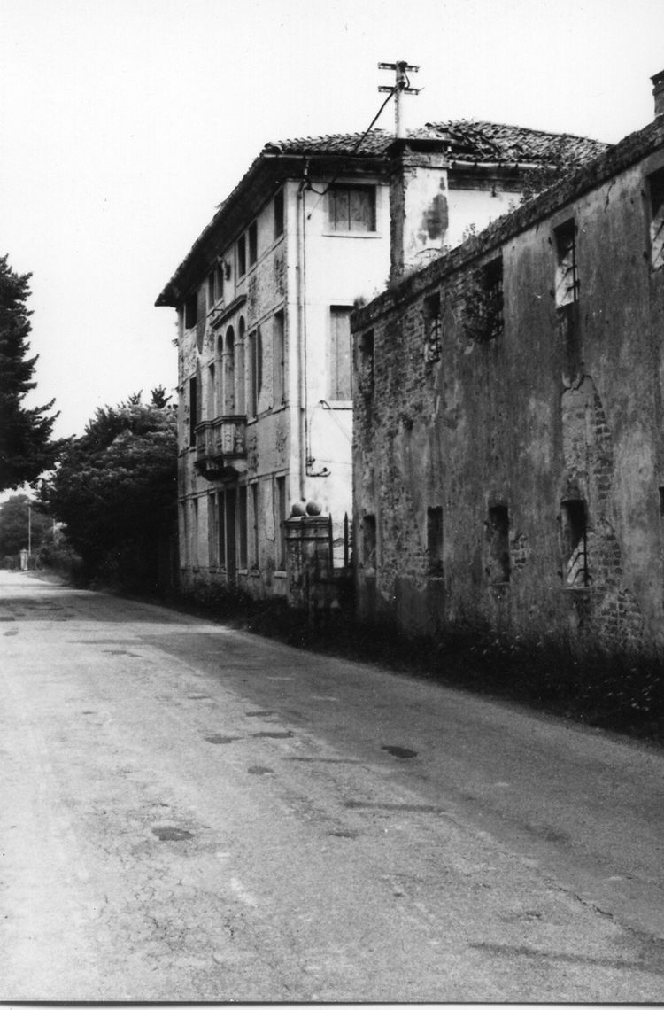 Complesso articolato da abitazione padronale, barchessa affiancata a Ovest, altri volumi annessi isolati. Villa a pianta rettangolare su tre livelli, con tetto a padiglione e abbaino emergente. Trifora centinata centrale.Specifiche: