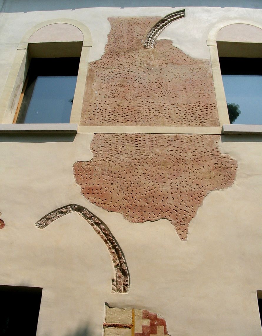 - Descrizione: Tracce di intonaco cinquecentesco, a scacchi, in facciata.