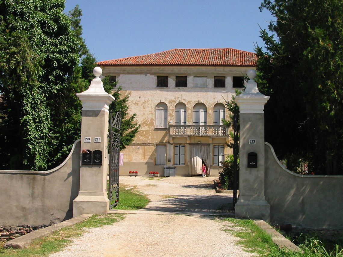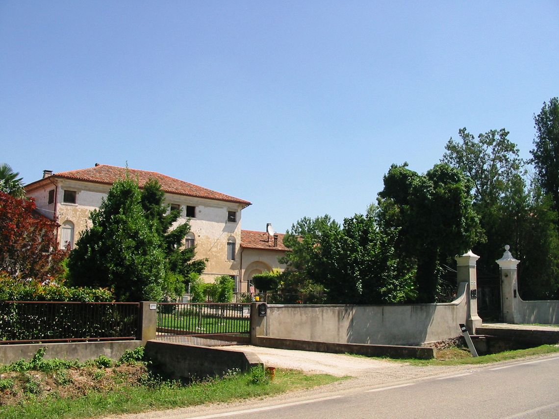 Complesso costituito da villa, barchessa, annessi rustici e oratorio. Villa a pianta rettangolare, su tre livelli, tetto a padiglione. Finestre centinate a tutto sesto a piano primo, con trifora centrale e poggiolo balaustrato. A destra si innesta la barchessa (ottocentesca?) a un piano, con archi a tutto sesto. A sinistra edifici rustici disposti a L perpendicolarmente alla villa. Oratorio discosto, su strada, a una navata con timpano triangolare.Specifiche: