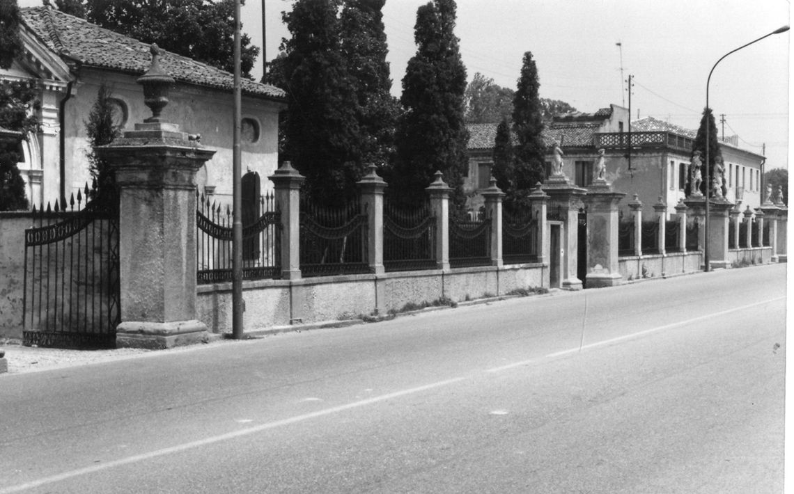 Complesso costituito da villa, barchessa e oratorio. Villa a pianta rettangolare, su tre piani, con tetto a padiglione. Barchessa affiancata a Est, su due piani. Oratorio staccato del 1684 (ca.) a una navata, con timpano triangolare sommitale e finestre termali.Specifiche: