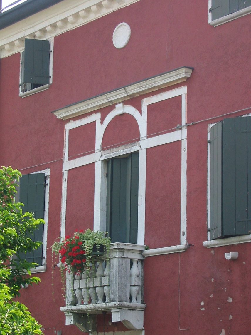 Villa con adiacenze. Villa a pianta rettangolare, su tre livelli, con tetto a capanna. Serliana a piano primo.Specifiche: