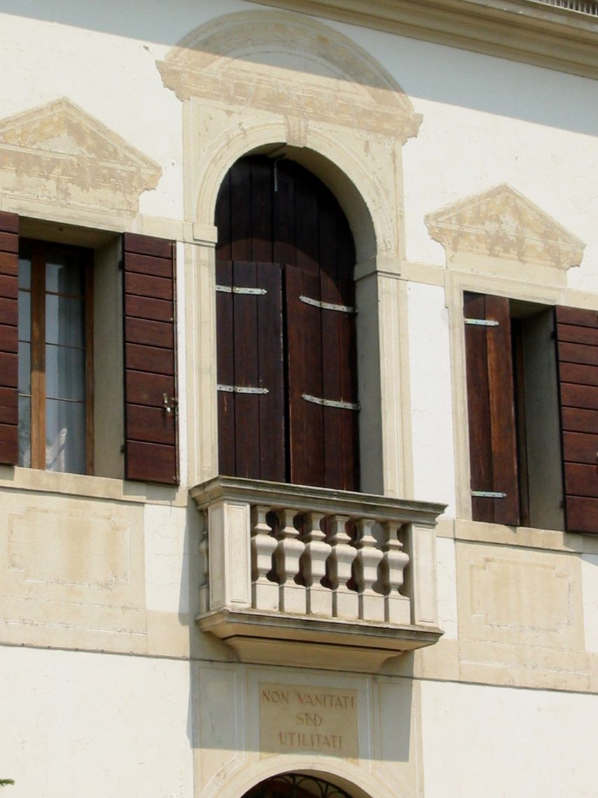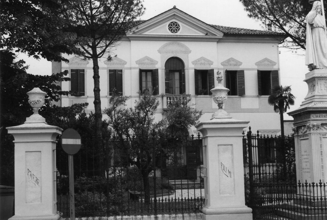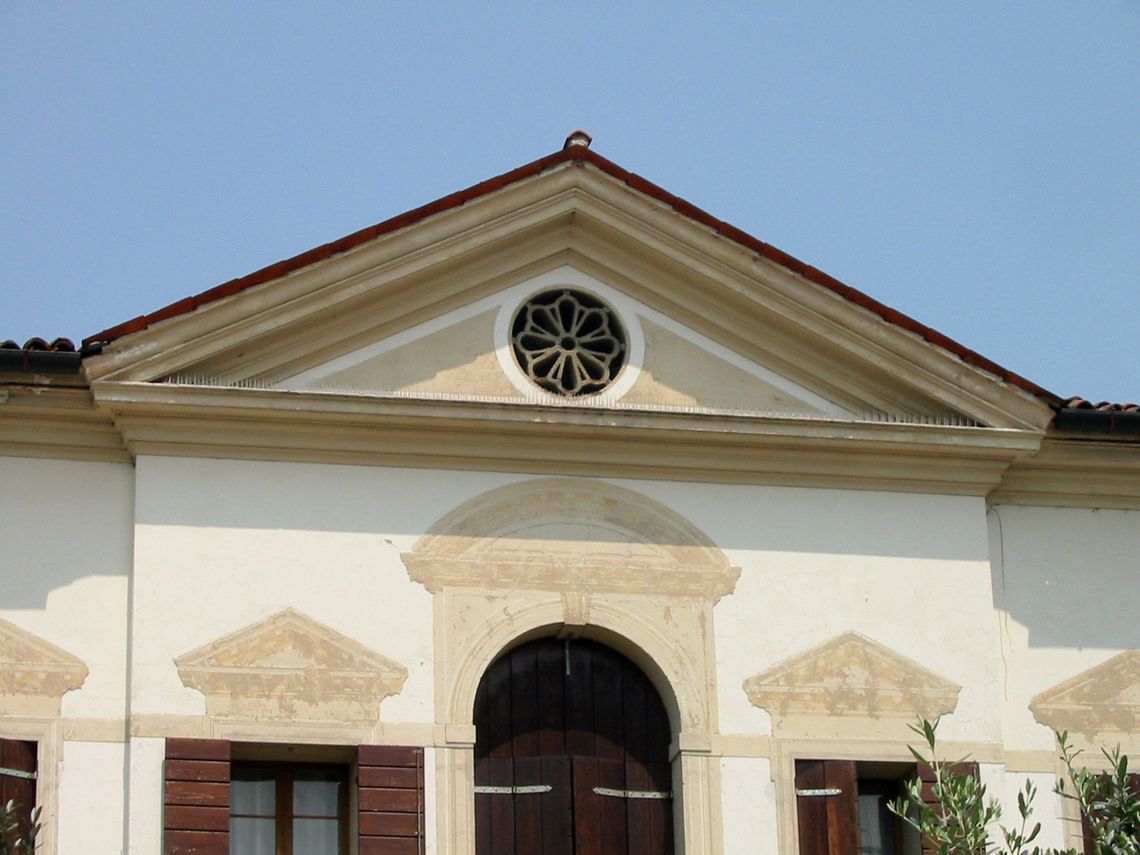 Edificio a pianta rettangolare, su due piani, con tetto a padiglione. Settore centrale concluso da timpano triangolare. Portale centinato di ingresso. Bifore centinate sui lati.Specifiche:
