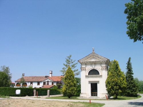 Dell'originario complesso rimangono la barchessa a due piani e pianta rettangolare che presenta due alte arcate a tutto sesto e un oratorio, a pianta quadrata e abside estroflessa.Specifiche: