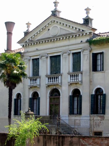 La villa, impostata su due livelli, ha il fronte tripartito con la parte centrale in maggior risalto e in cui quattro paraste ioniche giganti reggono un timpano triangolare e scandiscono le aperture centrali. Una barchessa in mattoni affianca la villa.Specifiche:
