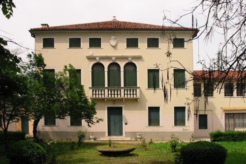 Il corpo principale, arretrato rispetto al fronte stradale, si presenta simmetrico intorno a un asse centrale. La facciata si articola su tre piani e sette assi e presenta, nella parte centrale, una trifora architravata.Specifiche: