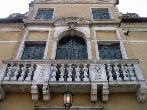 Articolato complesso in cui si dispongono come una compatta cortina edilizia e si susseguono senza soluzione di continuità i rustici, l'oratorio, una prima barchessa, il corpo padronale, una seconda barchessa e ancora altri rustici.Specifiche:
