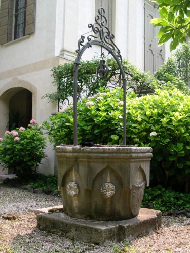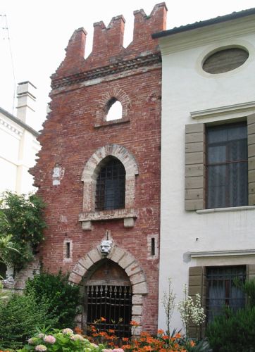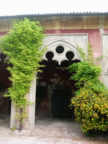 Complesso formato da villa e due barchesse. La villa è a pianta rettangolare, su due piani principali e un sottotetto. Corpo principale aggettante rispetto alle due brevi ali. Paraste ioniche in facciata terminate da timpano triangolare. Rovine neomedievali addossate all'ala occidentale. Barchessa agganciata sul lato Est, con tre arcate a tutto sesto e tre neogotiche polilobate. Distaccata dalla villa.Specifiche: