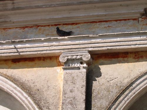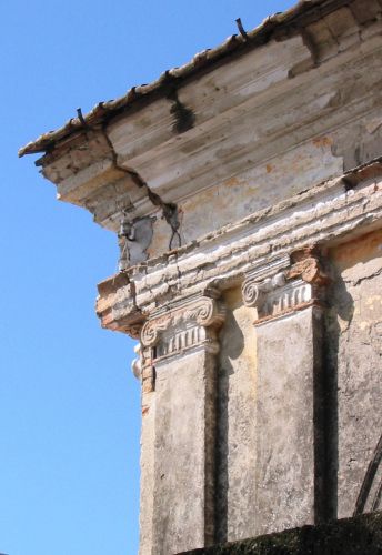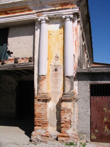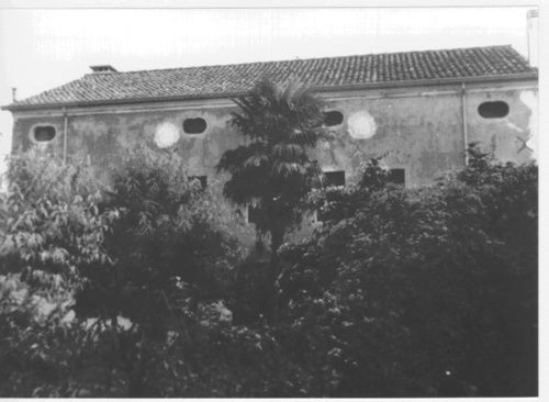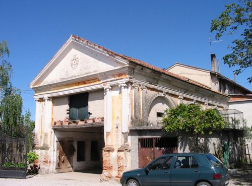 Dell'antico complesso si conserva solo la barchessa. L'edificio è a pianta rettangolare ed è scandito in facciata da tre grandi archi a tutto sesto coronati di trabeazione sorretta da un'elegante teoria di paraste ioniche.Specifiche: