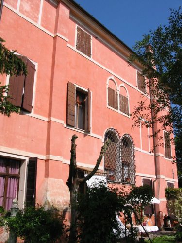 Villa a pianta quadrata, su tre piani, con tetto a padiglione. Prospetti uguali a Nord e a Sud con serliana al piano nobile. Stemma dei Papadopoli a Nord.Specifiche:
