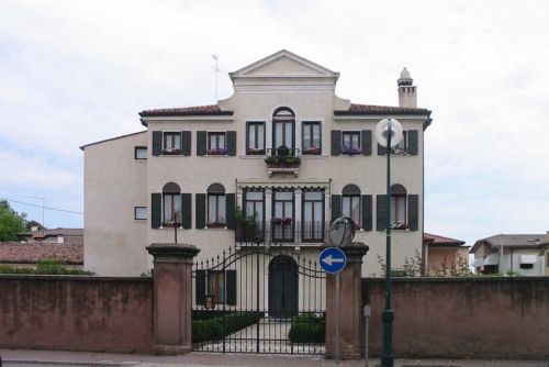 Complesso costituito da villa, barchessa e oratorio. Villa a pianta quadrata, su tre piani, con parte centrale sopraelevata conclusa da timpano triangolare e piccole volute laterali. Facciata ovest con superfetazione recente. Barchessa distaccata, posta sul lato sinistro, a un piano con arcate a tutto sesto. Oratorio, annesso perpendicolarmente alla barchessa, a una navata con timpano triangolare.Specifiche: