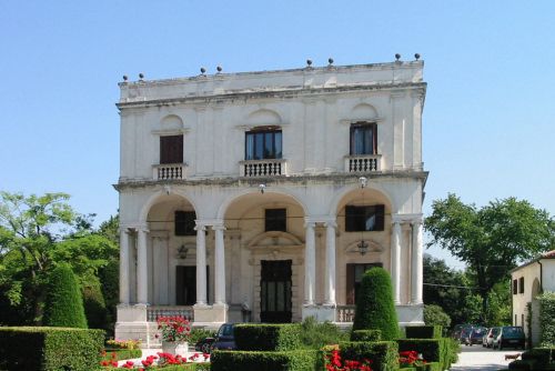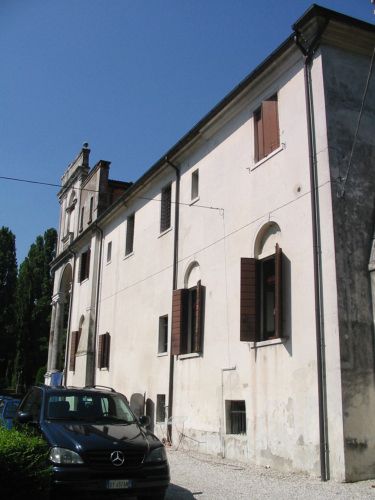 Villa con barchessa, torre colombara e oratorio. La villa edificata in due tempi diversi ha un avamposto loggiato, a tre arcate, attestato sull'antico volume cinquecentesco. La barchessa è separata dalla villa e presenta un portico a quattro campate archivoltate a tutto sesto. La torre colombara è posta davanti alla barchessa. L'oratorio è collocato a sinistra della villa, nel parco. Consta di una navata con timpano triangolare in facciata.Specifiche: