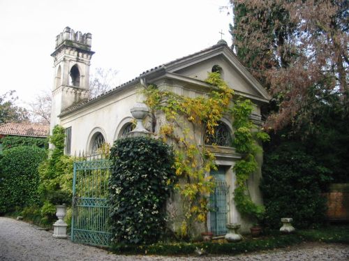 Complesso costituito da villa, adiacenze e oratorio. Villa a pianta rettangolare, su tre piani, con timpano triangolare centrale e tetto a padiglione. Lunga adiacenza addossata a Sud e altra a Est. Oratorio discosto.Specifiche: