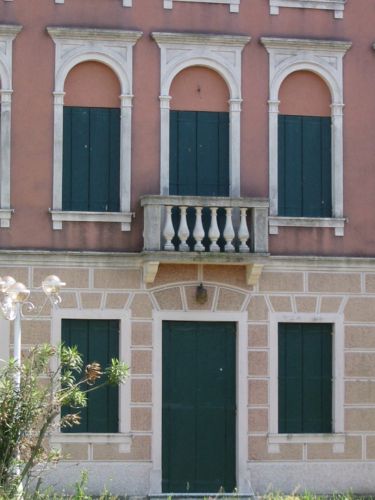 L'edificio presenta il tipico impianto tripartito veneziano e si articola su tre livelli. Il piano terra presenta un finto bugnato e delle aperture ad arco disposte su sette assi.Specifiche: