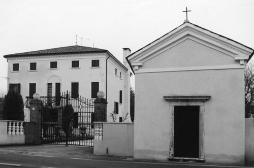 La villa a tre piani e cinque assi dal volume compatto e parallelepipedo, si presenta fortemente rimaneggiata a seguito della divisione in due unità edilizie.Specifiche: