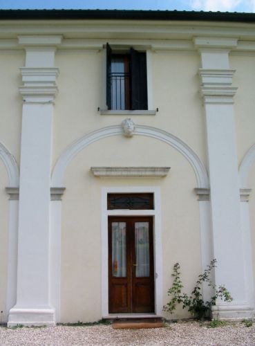 La costruzione ha subito pesanti interventi nel secolo scorso che ne hanno modificato l'originario assetto. Il complesso presenta un impianto planimetrico a "T" dovuto all'annesso di recente costruzione che si addossa ortogonalmente alla barchessa. L'edificio, a due piani, presenta ancora delle lesene di ordine gigante con doppio capitello che inquadrano le tamponature delle originarie arcate.Specifiche: