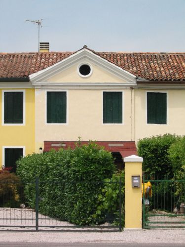 A pianta rettangolare allungata, su due livelli, con tetto a padiglione. Timpano triangolare centrale con finestra circolare.Specifiche: