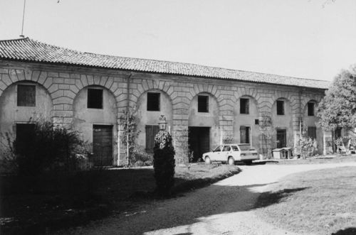 Complesso costituito da villa padronale, numerose adiacenze rustiche e barchessa a Ovest. La villa è un volume residuo della preesistente villa distrutta durante la seconda guerra mondiale. Un portale architravato, concluso da cornice a dentelli, immette in un atrio di ingresso. Barchessa laterale a due livelli, un tempo scuderia, che risulta collegata alla villa da un corpo più basso. Facciata bugnata con arcate a doppia altezza e a tutto sesto murate, con due aperture sovrapposte ciascuna. All'interno una fila di colonne con capitelli in pietra.Specifiche: