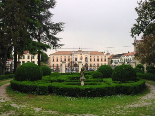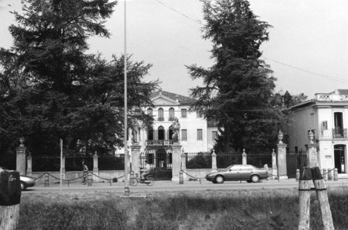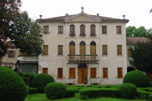 Il complesso, centrato su un giardino alberato con aiuole e statue, si compone dell'unità padronale affiancata da due ali di servizio asimmetriche alle quali sono unite a ovest una barchessa e, a est, due corpi combinati a "L". A chiusura della proprietà vi sono due edifici d'angolo a due piani con planimetria rettangolare.Specifiche: