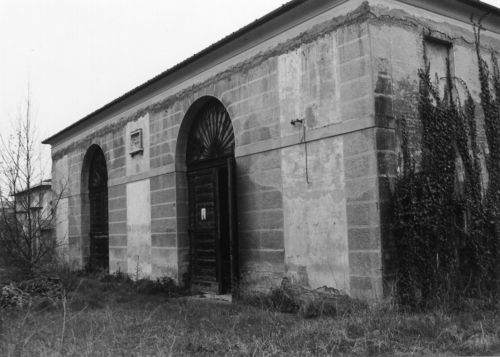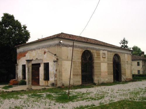Annesso settecentesco, a pianta rettangolare allungata, su tre piani, con timpani triangolari sommitali alle estremità. Muro merlato recente a Est (1940, Giuseppe Volpi). Rustico ovest con due portali archivoltati a tutto sesto.Specifiche: