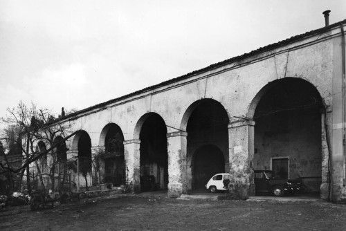- Descrizione: Nel porticato si vedono tre stemmi tra le arcate e parte di un fregio a figure monocrome sulla parete settentrionale.
